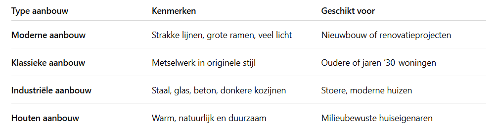 Er bestaan talloze stijlen voor aanbouwen, elk met hun eigen charme.